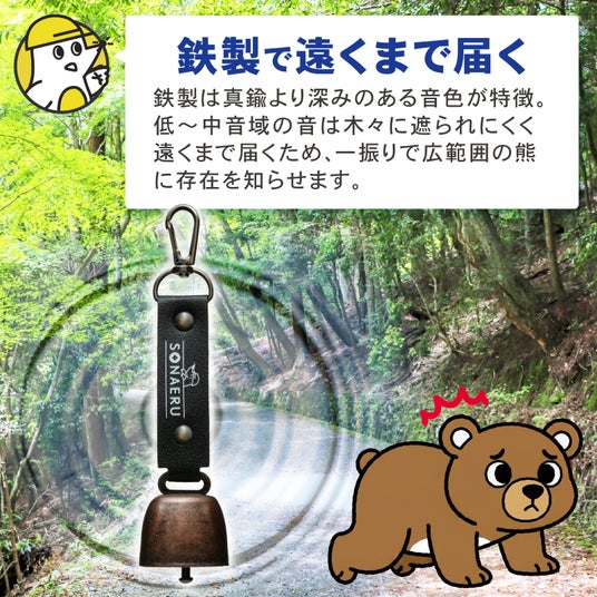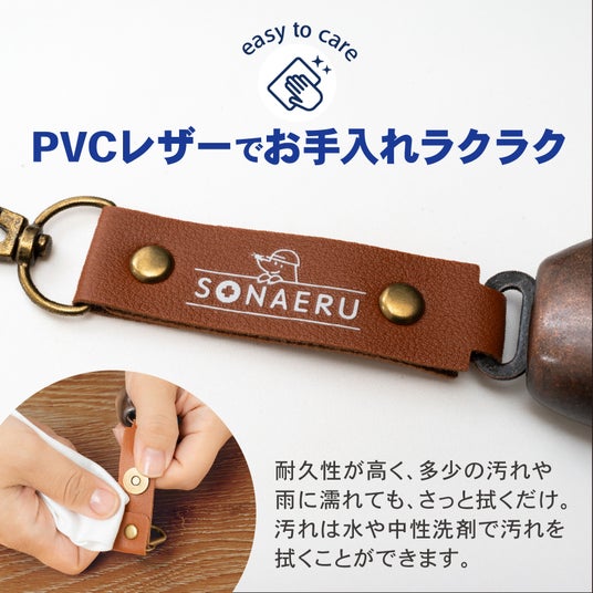 <鉄製鈴を採用し、クリアな音色>鈴部分には鉄製素材を使用しており、しっかりとした作りで安心感があります。軽量でありながらも、澄んだ音が鳴りやすく、屋外でも音が届きやすい仕様です。