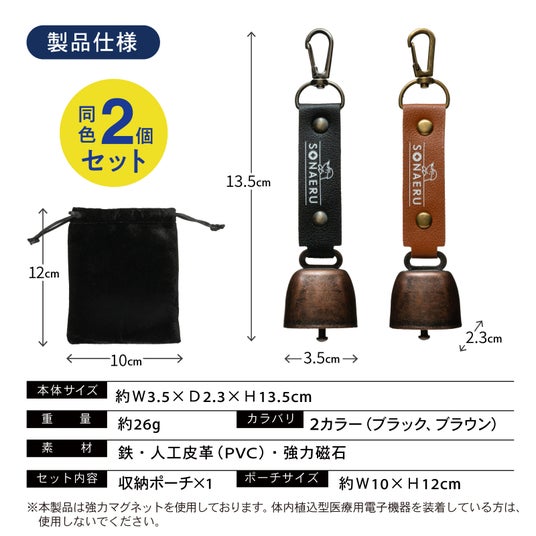 必要な時はベルを揺らして音を鳴らし、移動中などはワンタッチでマグネット固定して消音。状況に合わせて瞬時に音のON/OFFを切り替えられます。