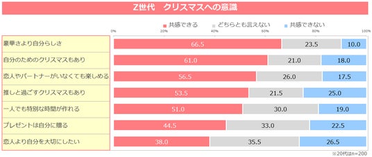 Z世代は「自分が心地よく過ごせるかどうか」を最重視し、クリスマスを「恋人と過ごすイベント」と捉える感覚が弱まりつつあることがうかがえます。