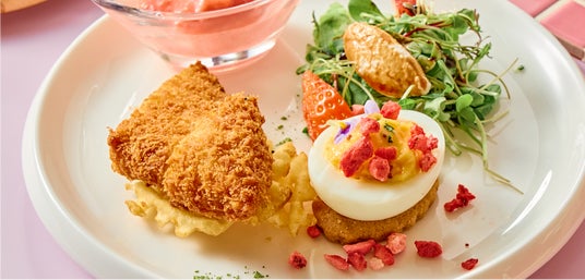 苺タルタル添えのフィッシュアンドチップスやいちごのサラダを継続して楽しめるほか、イースターシーズンの定番メニューも味わえます。