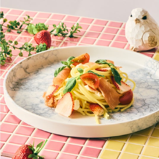 いちごと生ハムの温製カプレーゼ風パスタ 2,300円(単品)/ 1,800円(オプション)