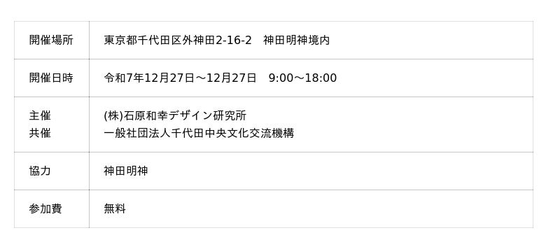 令和7年12月27日開催「神田明神 江戸園芸市」主催/企画(株)石原和幸デザイン研究所 共催:一般社団法人千代田中央文化交流推進機構 協力:神田神社