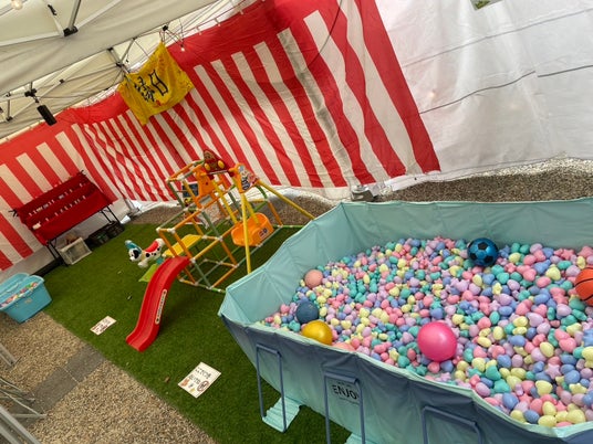 お子様も楽しめる縁日コーナー、わんちゃんも一緒にテラス席も充実