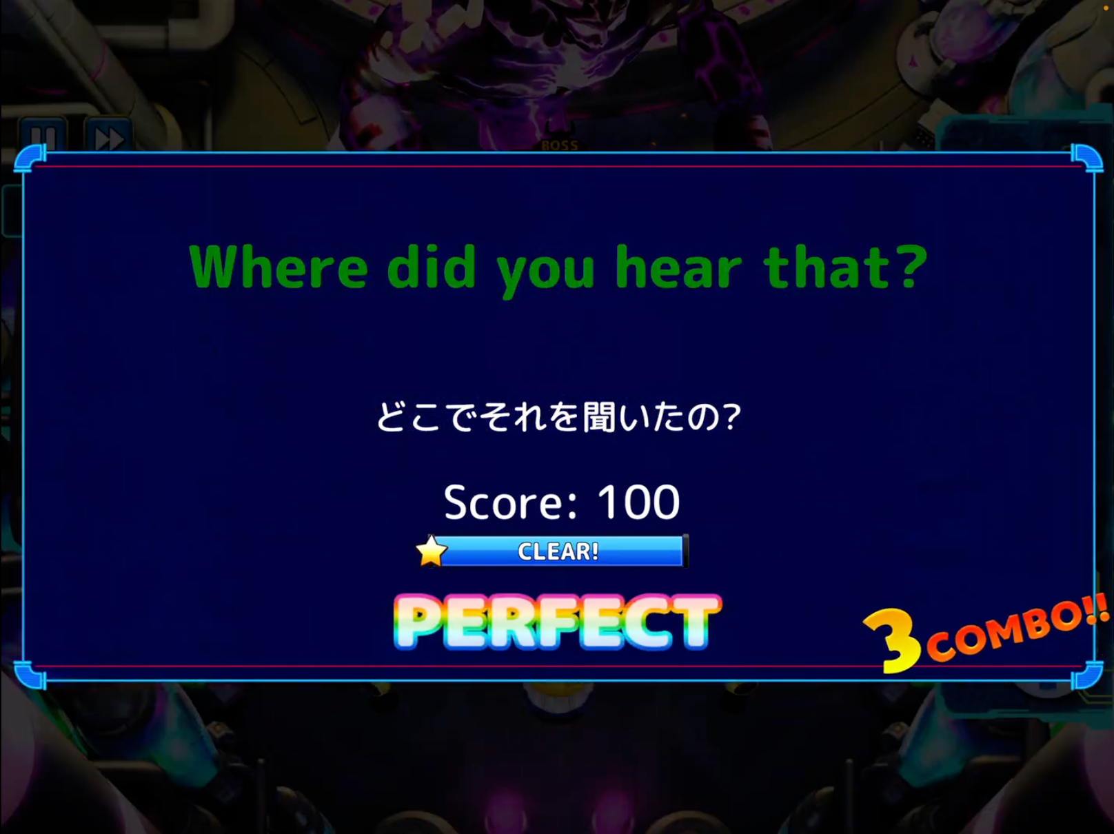 「発音」で攻撃!単語/フレーズの難易度は徐々に高校卒業レベル(英検(R)️2級相当)まで上がっていきます。