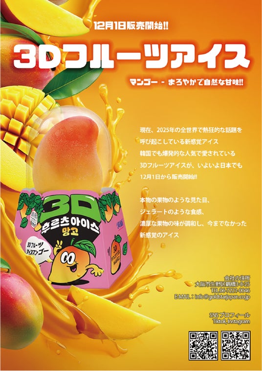 株式会社 Gold Starは、世界的音楽アーティスト BLACKPINK とコラボレーションした期間限定の購入応募型キャンペーン 「BLACKPINK × 3Dフルーツアイス キャンペーン」 を、2025年12月19日(金)から2026年1月5日(月)までの期間で実施いたします。