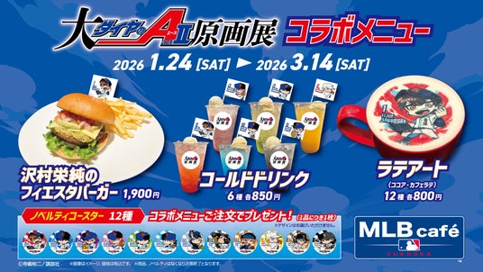 BOSS E・ZO FUKUOKA 3F「MLB cafe FUKUOKA」では、「大『ダイヤのA actII』原画展」とコラボグルメを販売いたします!オリジナルのバーガーやドリンク、ラテアートなどお楽しみいただけます。さらに、コラボメニューご注文でノベルティをプレゼント!