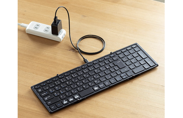 「スマホやタブレットを使って外出先でも作業をしたい」「コンパクトサイズのキーボードでデスク周りをスッキリさせたい」方におすすめしたいのが、サンワサプライの「Bluetooth折りたたみフルキーボード」。