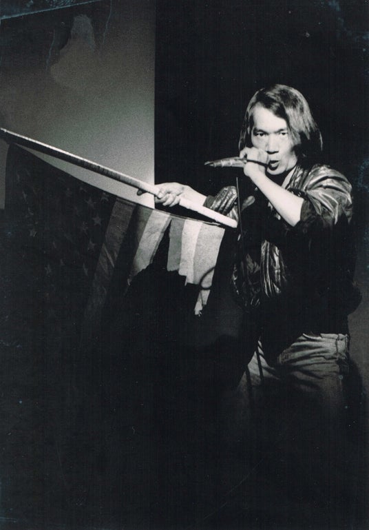 マイクを用いて語る元天井棧敷・昭和精吾の技法によって、寺山修司の言葉の力を伝えている昭和精吾事務所。