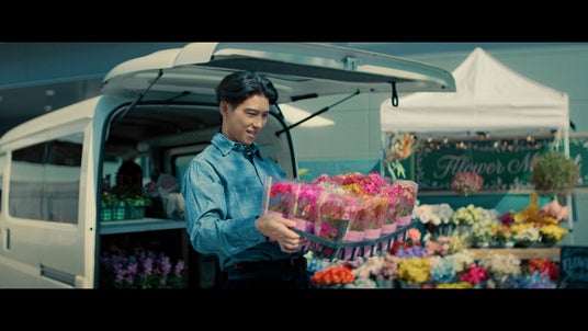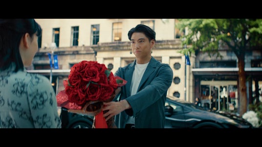 長い一本道をスポーツカーで走り、自由な生き方を謳歌する姿。サーフボードを乗せた車で趣味に生きる楽しさ。さらには「仕事を変えてみようかな」とフォトグラファーや花屋になる自分。妄想はさらに広がり、運転中に隣に止まった赤い車の女性と運命的な出会いをし、プロポーズ。結婚し、赤ちゃんを乗せたファミリーカー、家族みんなでキャンプに向かう車など、「コスモMyカーリース」で人生に合わせた車を運転する賀来さんの姿が描かれます。そこに、「乗るのは、自由というクルマ。」というコピーが入ります。