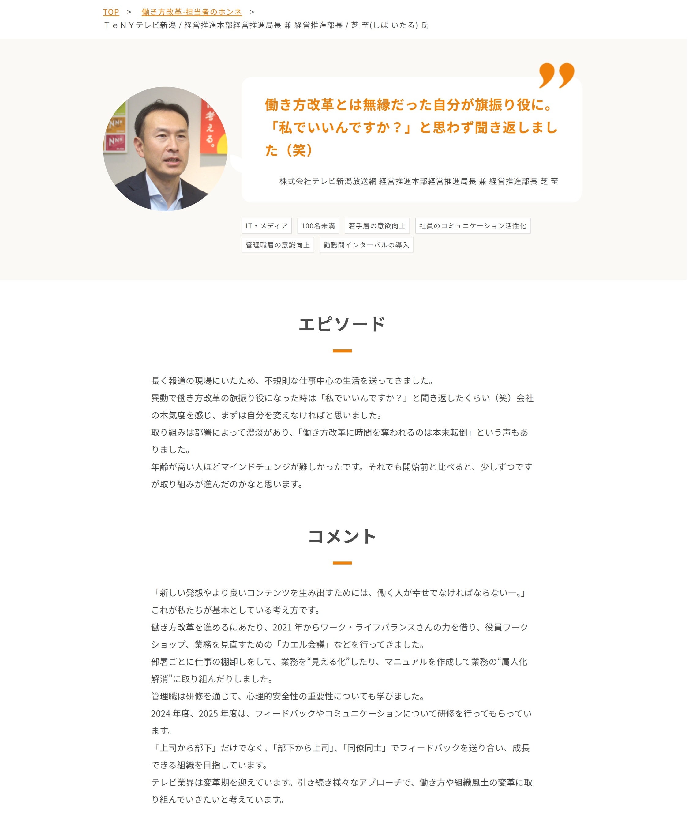 日本企業の働き方改革が停滞する一因とされる“現場の課題”を可視化するため、推進担当者が実名・顔出しで語る本音や葛藤を体系的にまとめた点が本企画の特徴です。本ページでは、担当者が直面してきた葛藤・反発・迷いなど、これまで公にされにくかった“現場のリアル”を紹介しており、働き方改革の実務に関心を持つメディア・研修担当者・経営層にとっても貴重な資料となる内容です。