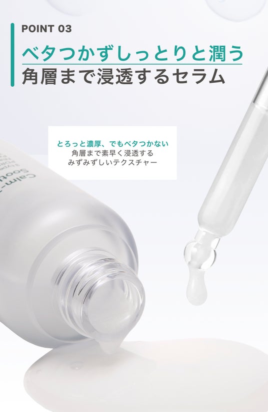 とろっと濃厚、でもベタつかない、角層まで素早く浸透するみずみずしいテクスチャーにこだわりました。
