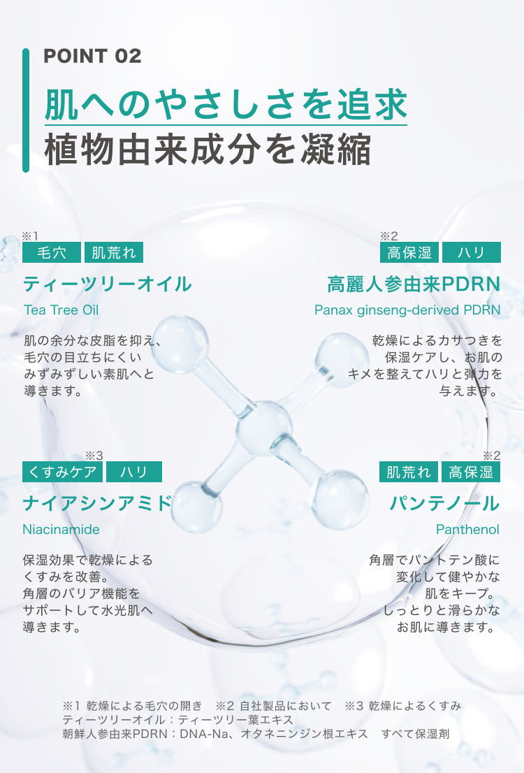 肌の余分な皮脂を抑え、毛穴の目立ちにくいみずみずしい素肌へと導きます。