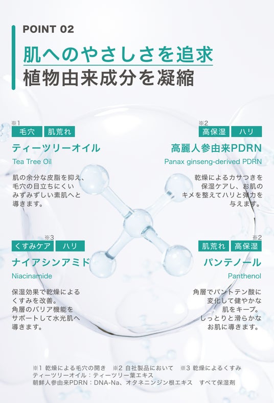 乾燥によるくすみを改善して、ハリのある水光肌へ導きます。