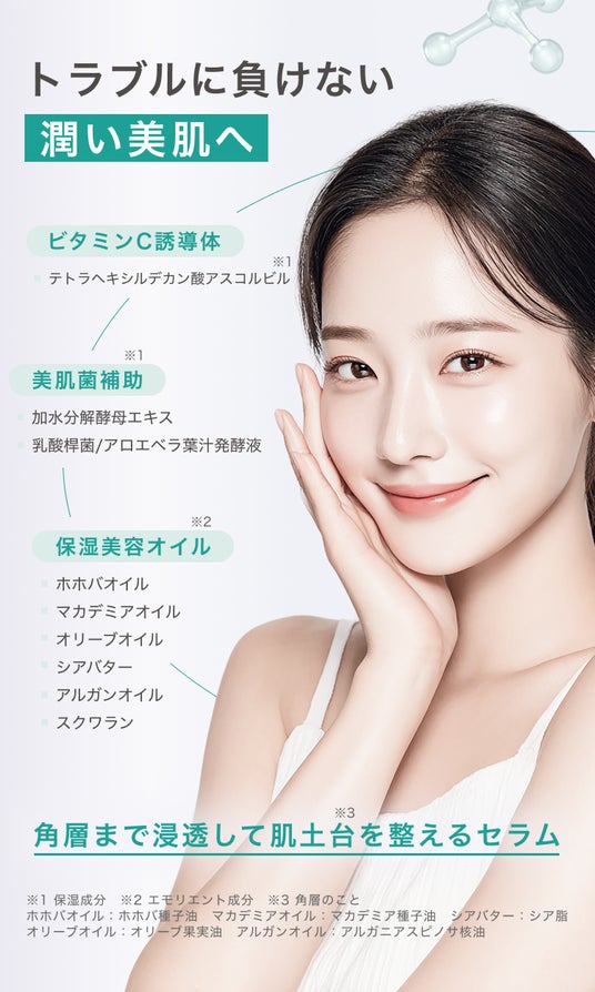 本製品は、繰り返す肌トラブルに負けない潤い美肌を叶えるため、7つの整肌成分を配合しました。