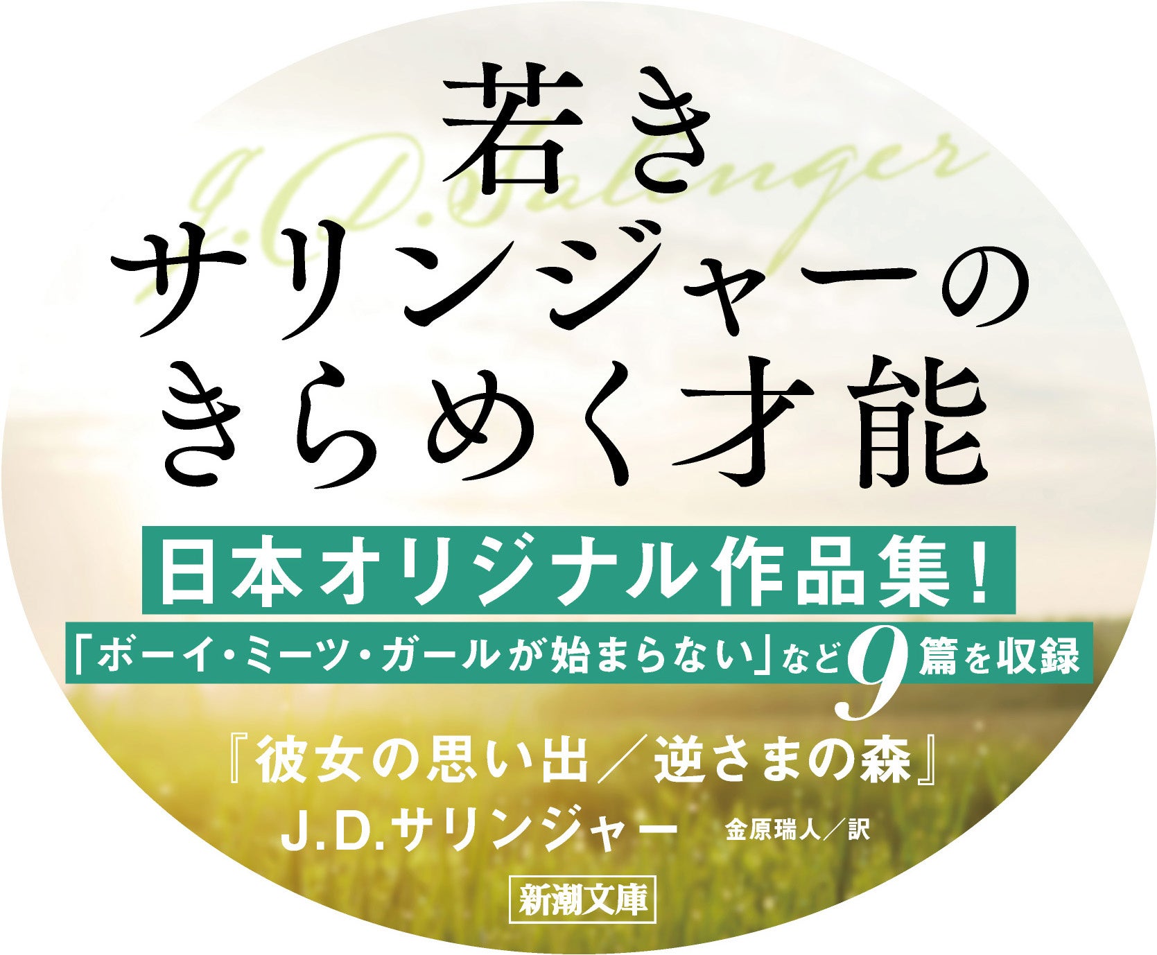 (1919-2010)ニューヨーク市生れ。1940年に短編「若者たち」、1950年「エズメに──愛と汚れをこめて」(O・ヘンリー賞)を発表。1951年『キャッチャー・イン・ザ・ライ』を刊行し、一躍脚光を浴びる。1953年『ナイン・ストーリーズ』刊行の後、ニューハンプシャー州コーニッシュに隠遁した。1955年ニューヨーカー誌に「フラニー」を、1957年に「ズーイ」を発表。1961年に単行本『フラニーとズーイ』を刊行した。1963年『大工よ、屋根の梁を高く上げよ シーモア─序章─』を刊行したが、1965年6月、ニューヨーカー誌に「ハプワース16、1924年」を発表以後、沈黙を守り続けた。【訳者紹介】金原瑞人(カネハラ・ミズヒト)