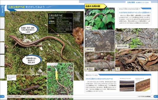 身近なは虫類として代表的なカナヘビ、ニホンイシガメ、シマヘビなどの行動パターンや探し方を紹介し、自然観察や飼育方法なども写真やイラストでわかりやすく解説します。