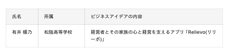 将来的に起業に挑戦する意欲を持っていただくため、起業に関心を持つ学生から、 「社会や地域の課題解決」や「研究の社会実装」等を目指したビジネスアイデアを募集 しました。