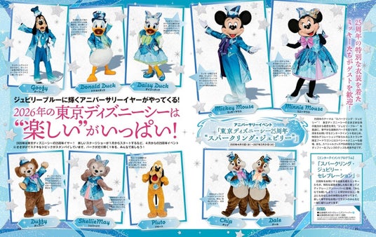 スペシャルとじ込み企画は、毎年恒例の「Disney FANカレンダー2026」! 東京ディズニーリゾートの美しい写真を中心に、編集部が制作したオリジナルカレンダーです。2026年にアニバーサリーを迎えるディズニー映画やキャラクターの情報も掲載されています。