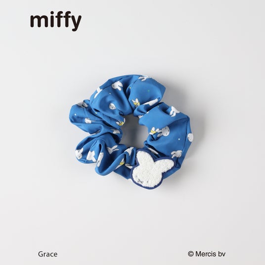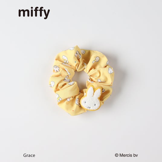 さまざまな年代のミッフィーがプリントされたカラフルな色合いがポイントのシュシュです。