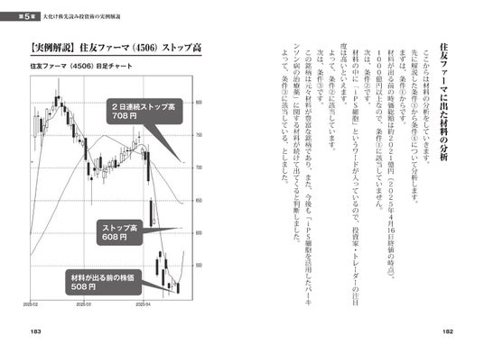 株式投資で大きなリターンを狙ううえで欠かせない株価材料の読み解き方を軸に、実際に株価が急騰した銘柄の事例を交えながら、再現性の高い売買手法を具体的に解説しています。