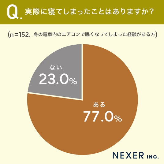 冬の朝、通勤・通学の電車で暖かさのあまり寝てしまい、寝過ごした経験があるかについて聞いてみました。
