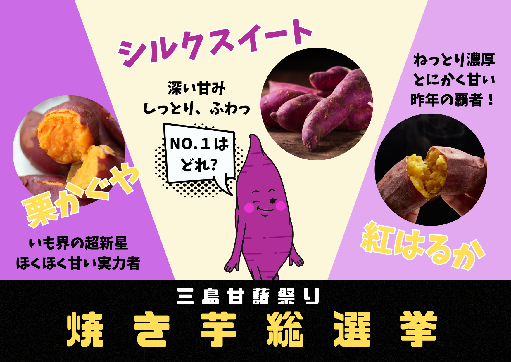 焼き芋総選挙「産地の品種決定はあなたの一票に!!」をみしまるかんで開催します。