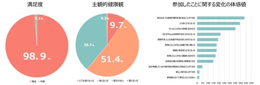 参加者の外出頻度は7割以上で増加し、週5回以上外出する割合も向上しました。また、健康状態の改善を実感した方が全体の6割を超えるなど、高齢者の行動変容と健康増進の双方に寄与する有効な施策であることが明らかになりました。
