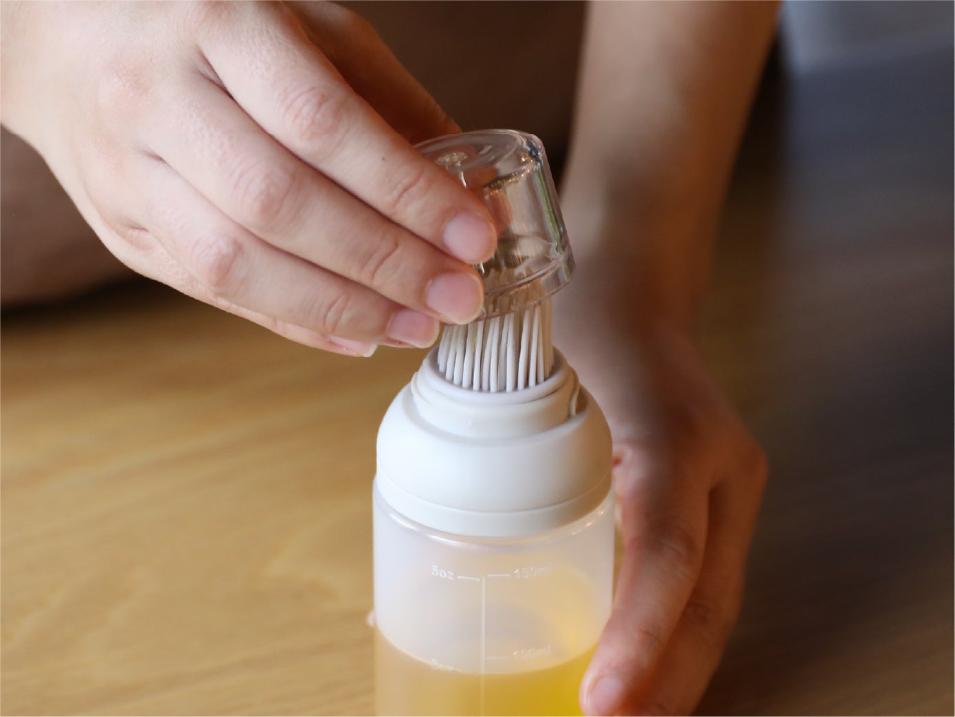 キッチンでも卓上でも使いやすい150mlミニサイズ。ブラシノズルで油を均一に塗りやすく、日々の調理がスムーズに。