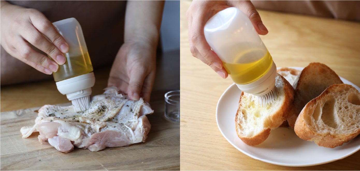 肉や魚、パンなどの 食材に直接油を塗る 使い方もできます。