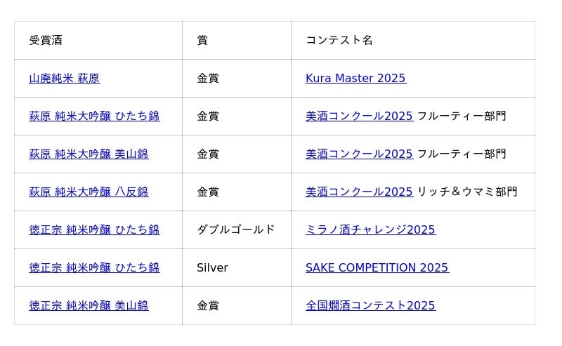 <2025年度受賞酒一覧>