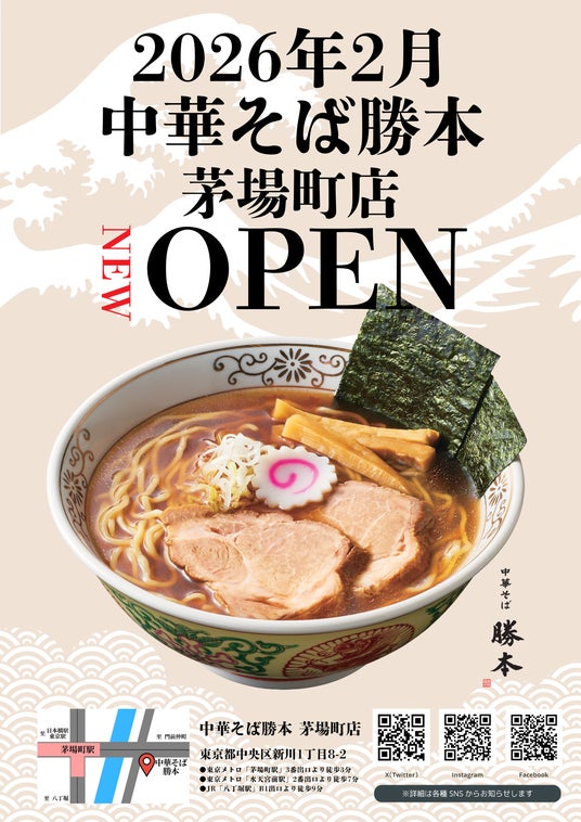 東京水道橋に本店を構える「中華そば勝本」(東京都千代田区・店主松村康史)は新店「中華そば勝本 茅場町店」を、2026年2月にオープンいたします。