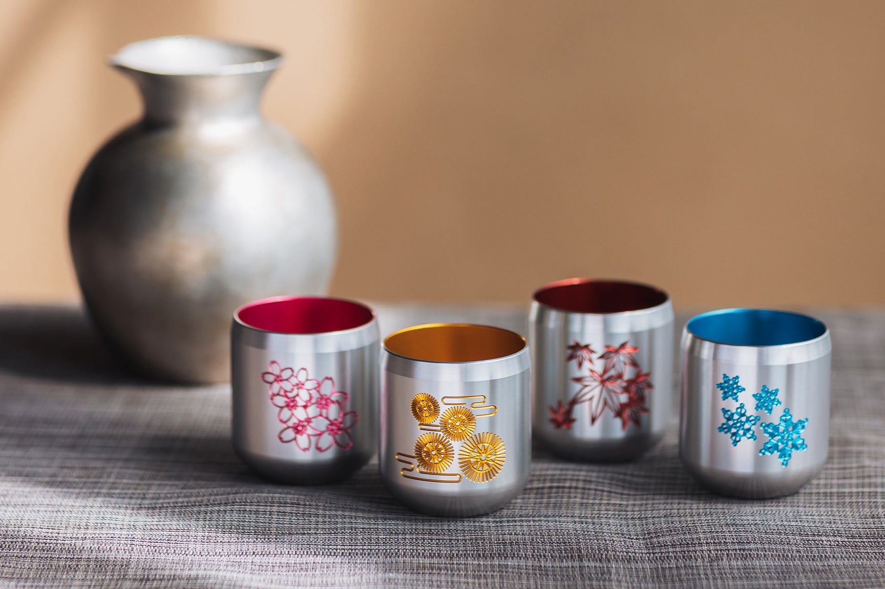 金属でありながらどこか柔らかさを感じさせる、 “光を味わう酒器”として設計されたシリーズです。
