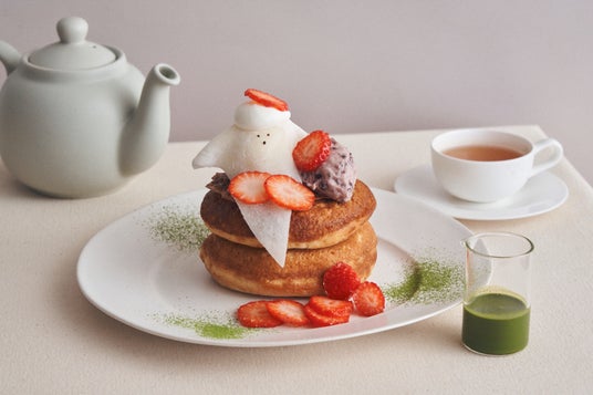 年末から新年へと季節が移ろう2025年12月26日(金)~2026年1月31日(土)の期間は、〈いちごとあん生クリームのニューイヤーパンケーキ〉を提供。キュートなおもちくんを添えた、和と洋がやさしく重なり合う、この時季ならではの一皿です。