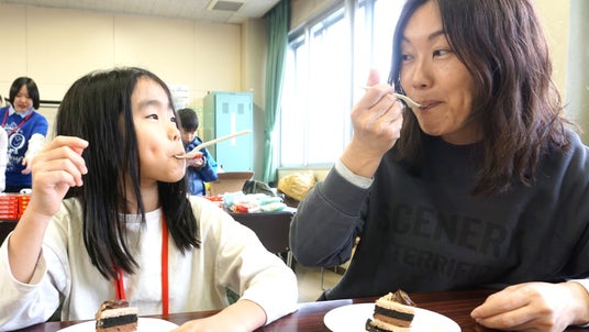 ケーキを召し上がっている様子