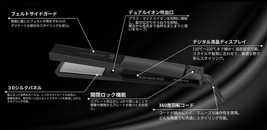 *1:グラフェンの単離方法に関する研究において *2:自社測定。機能非搭載品(デュアルイオンなし、シルク加工なし)との比較。アイロン温度を140度に設定し、40回熱を通した結果。使用環境(温度・湿度など)や、個人差で、効果は異なります。 *3:自社測定。機能非搭載品(デュアルイオンなし、シルク加工なし)との比較。6回アイロンを通した後の毛髪の水分含有量を測定。測定効果は使用環境(温度・湿度など)や個人差により異なります。 *4 ブラックのみ2026年1月6日(火)発売。ブラウン、グレーは順次発売予定。