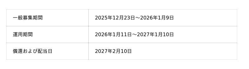 投資家の皆様にご出資いただく優先出資に加え、当社および当社が指定する者が劣後出資を行っており、本ファンドの償還時に元本割れが発生した場合は、劣後出資者が先に損失を負担します。
