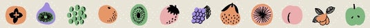 モチーフ:果物(柿、いちじく、青梅、みかん、キュウイ、いちご、ぶどう、デコポン、桃、ビワ、梨)