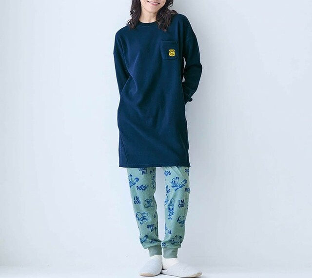 トップスはチュニックタイプで、おしり周りもぽかぽか温めてくれる長めの丈に。