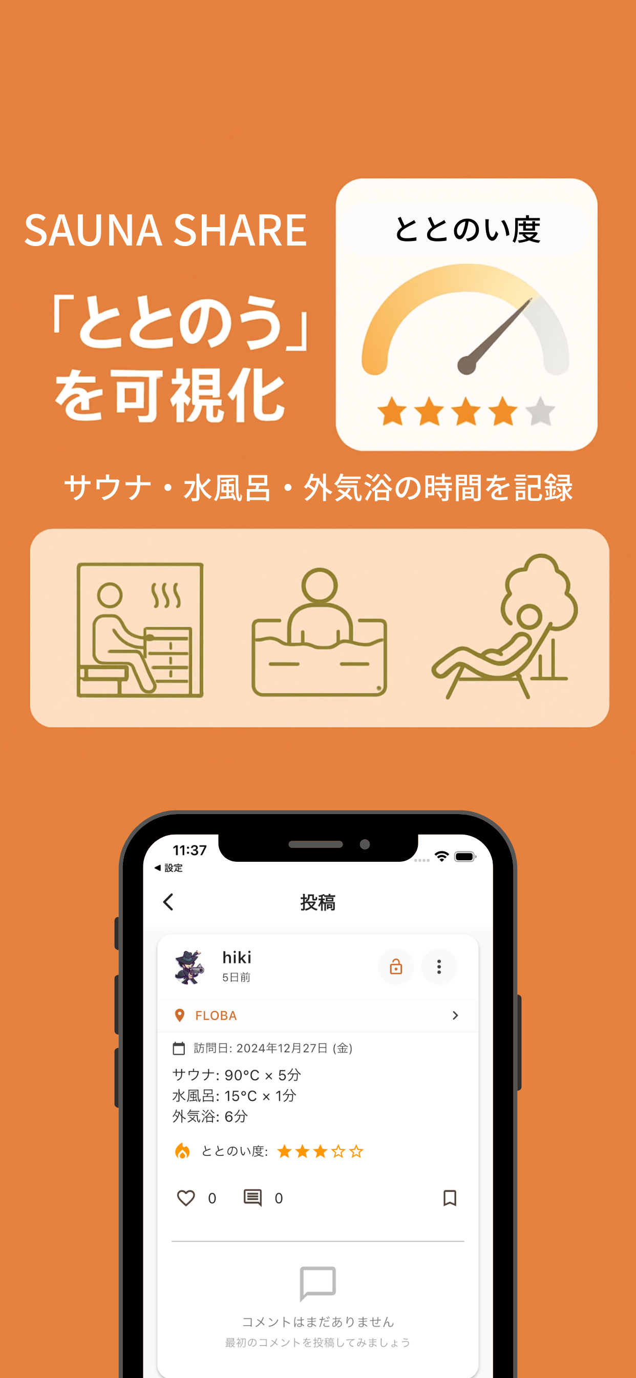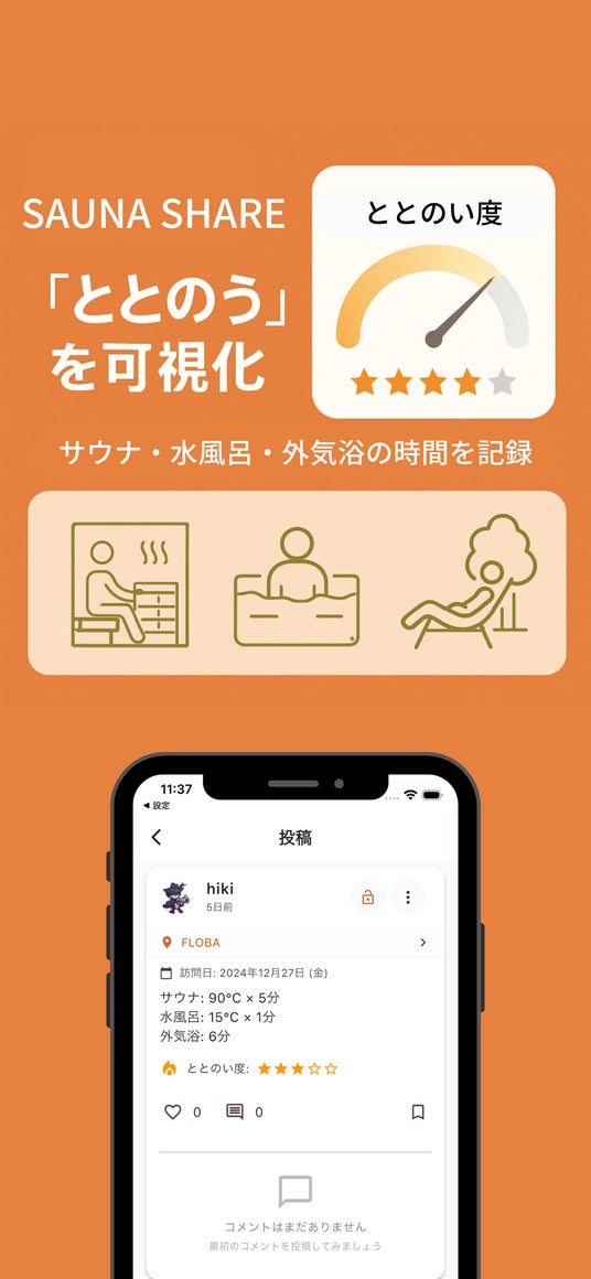 サウナ・水風呂・外気浴の「ととのう」体験を可視化し、サウナ愛好家同士で繋がれる