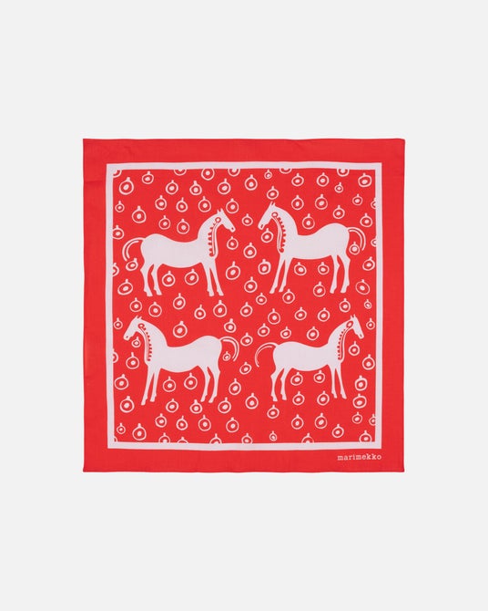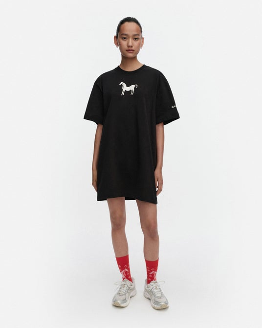 午年の幕開けを記念し、マリメッコは3,500点を超えるアーカイブプリントから、マイヤ・イソラのムスタ・タンマ(Musta Tamma)を再びフィーチャーします。1954年にデザインされたこのプリントは、マイヤ・イソラの幼少期の記憶に着想を得たもので、馬の群れとともに森を駆け抜ける自身の姿を思い描く、彼女の創造性が反映されています。