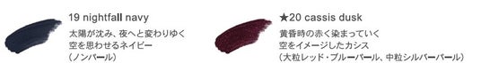 透明感とツヤ高いクリスタルクリアパウダーを配合し、美しい発色でツヤやかな仕上がりを叶えるニュアンスカラーマスカラから、上品で澄んだまなざしを叶える新色のネイビーラベンダーと、さりげない愛らしさを宿す限定のピンクブラックが登場。マスカラ下地、トップコートとしても使用できる強力なカール効果とカールキープ力で、まつ毛一本一本をしっかりと上向きに仕上げます。汗・水・涙に強いウォータープルーフタイプでありながら、クレンジングで簡単にオフが可能。まつ毛への負担感を軽減します。スライド性の高い球状パウダーにより、なめらかに塗ることができるので、重ねてもダマになることがありません。
