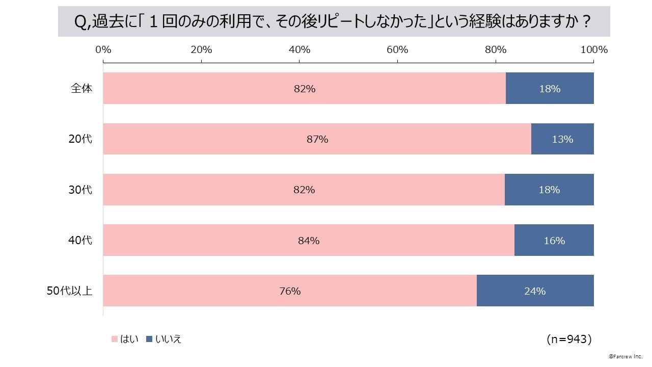 お客さまの声を最先端の分析でファン増加につなげる企業、株式会社ファンくる(本社:東京都千代田区、代表取締役社長:山口敬人)は、「ファンくる」会員を対象に、定期的に消費者の意識調査を実施しています。今回は美容室のリピートについて、1回のみの利用で終わってしまう理由や、継続利用の決め手などを「ファンくる」会員943 名(男性207名、女性736名)に調査を実施しました。