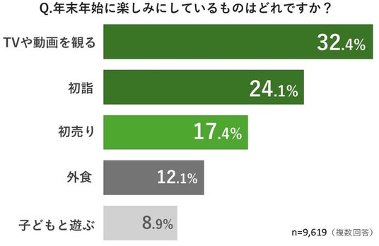 「自宅でのんびり派」の楽しみ方、「TVや動画を観る」「初詣」「初売り」が上位