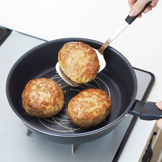 新製品「ディアメイズ」は、スピン加工により本体側面を薄く成形し、軽量化を実現したフライパンシリーズです。独自のフチ出し形状により液ダレしにくく、盛り付けもスムーズ。内面には、こびりつきにくく耐久性に優れた「シルクウェアEKダイヤモンドコート」を採用しています。全11サイズ展開で、毎日の料理から本格調理まで幅広く対応。ハンドルはシリコーン樹脂コーティングにより握りやすく、ガスコンロ・IHクッキングヒーターのどちらにも対応しています。