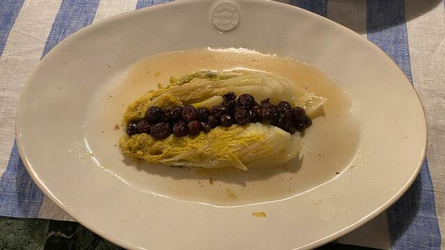白菜とレーズンをとろとろに煮てみた。これと生ハムを一緒に食べたら美味しいんじゃない?と思ったからなのだが……そうでもなかった。