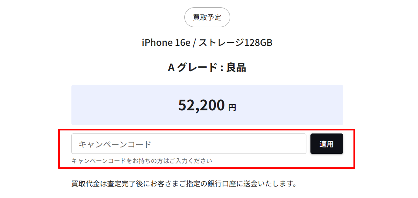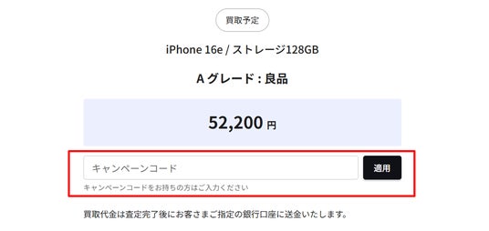 4.買取金額が表示され、その下に「キャンペーンコード」が表示