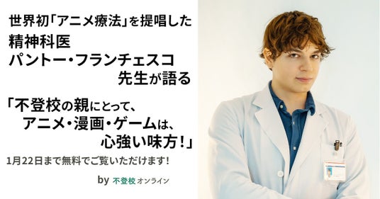 ■世界初「アニメ療法」を提唱した精神科医パントー・フランチェスコ先生が語る「不登校の親にとって、アニメ・漫画・ゲームは、心強い味方!」(有料会員様限定)https://futoko-online.jp/interview/18321/