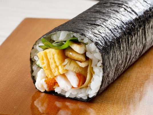 2026年の恵方は「南南東」です。願いを思い浮かべながらにぎり長次郎の巻き寿司を丸かぶりして、福を巻き込みましょう。