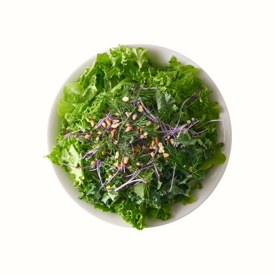 ロメインレタス・オークレタス・サニーレタスとリーフミックス、レッドキャベツスプラウトをベースに、わさび菜、ケール、ディルを惜しみなく盛り込みました。仕上げに香ばしいミックスナッツを散らし、香り豊かで濃厚な自家製バジルドレッシングを絡めれば、野菜本来のうまみがいっそう引き立ちます。アクアポニックス産野菜のよさが丸ごと味わえる、AQUAMOならではのフレッシュサラダです。