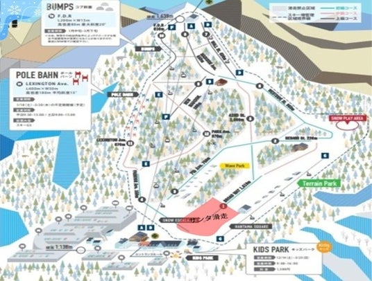 マップ内赤色箇所:サンタクロース一斉滑走エリア
